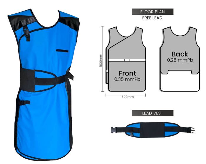 Jual Lead Free Apron Double Tanpa Lengan. Lead Free Apron atau biasa di kenal di indonesia dengan apron pb untuk xray adalah sebuah pakaian yang digunakan agar terhindar dari paparan sinar radiasi. Biasanya digunakan untuk orang – orang yang bekerja di bagian radiologi pada rumah sakit. Karena sinar radiasi memiliki efek samping oleh karena itu alat ini sangat – sangat di perlukan oleh pekerja yang berhubungan dengan sinar radiasi.